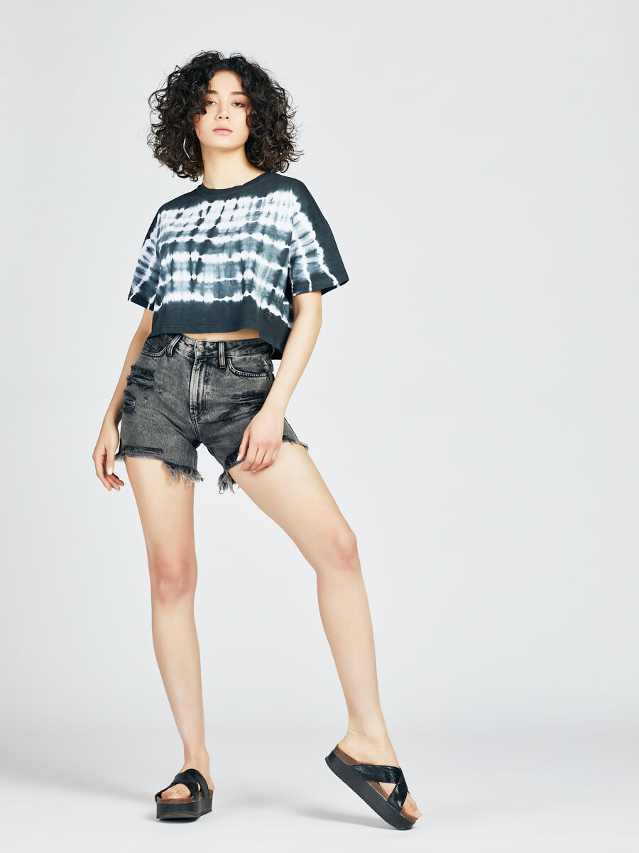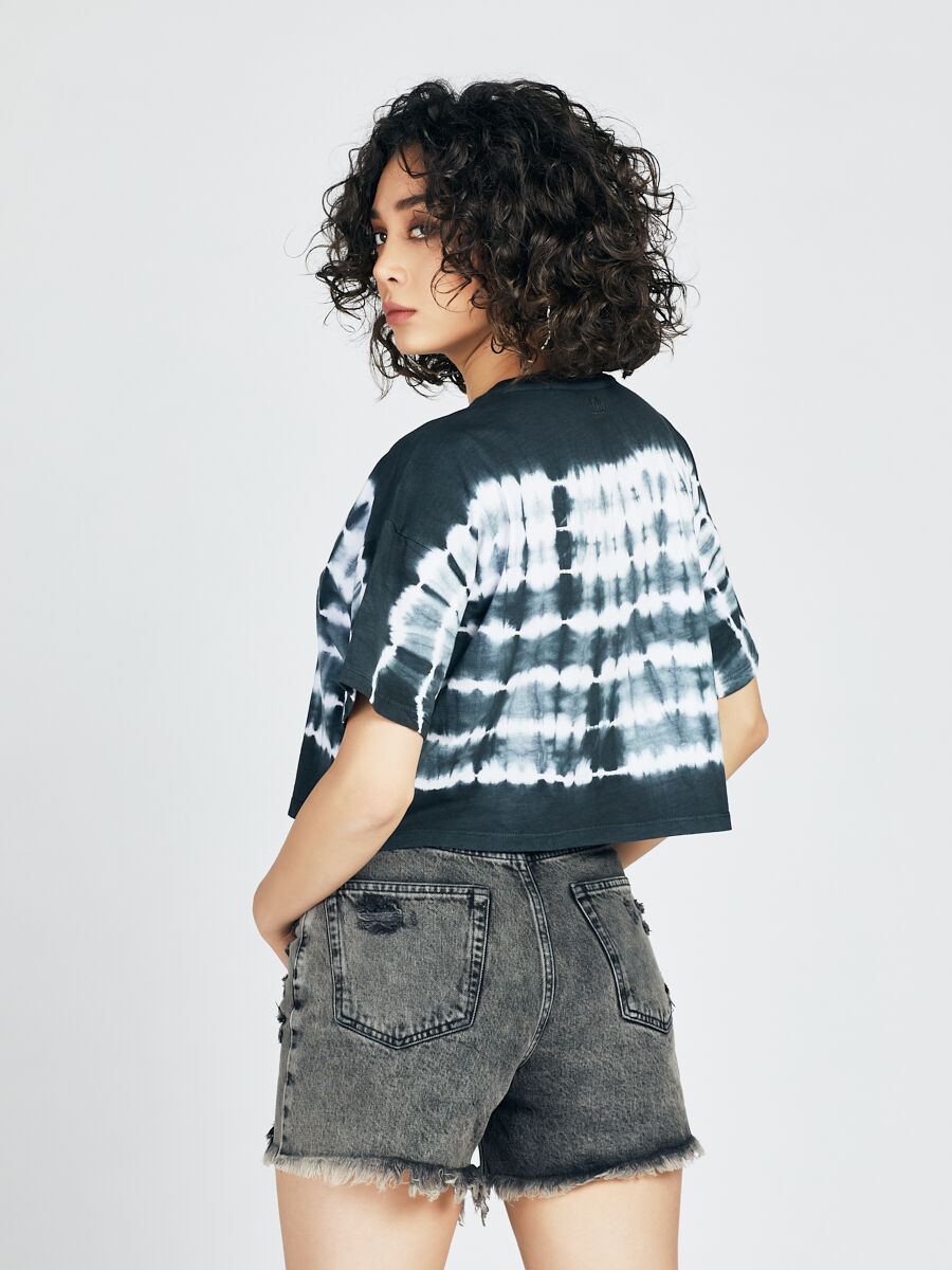 Bisiklet yakası ve kısa kollarıyla, bu crop tişört; vücudunu sarıp, hareketlerine eşlik ediyor. %100 pamuktan üretilmiş, nefes alabilir ve yumuşak dokusuyla gün boyu konfor sunuyor. Tie-dye deseninin asi duruşu, günlük ve sportif stilini bir üst seviyeye taşıyor.