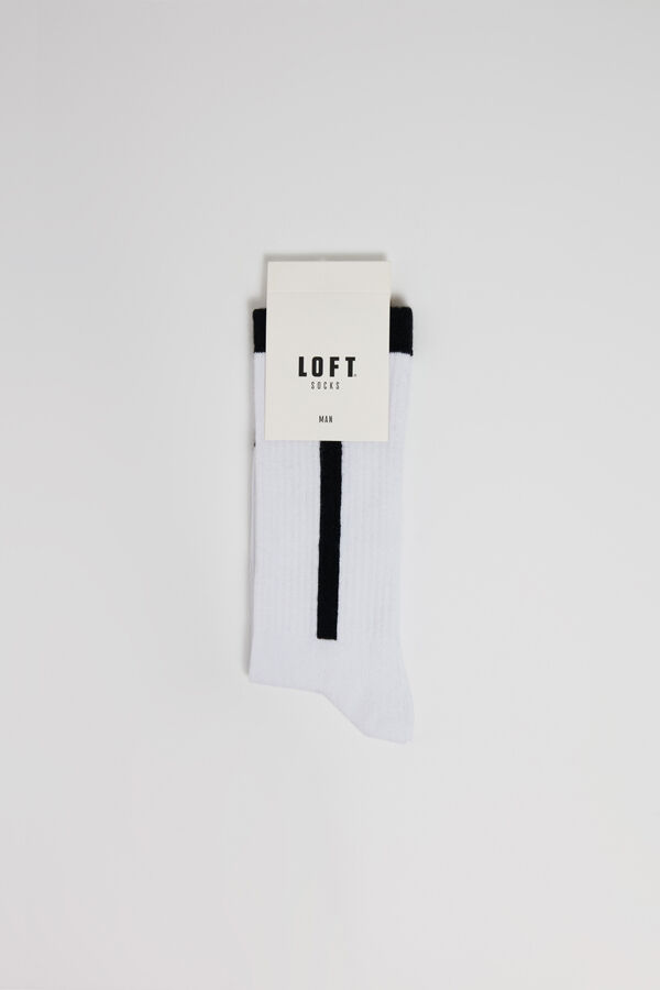 Bu beyaz çorap, hafif yapısıyla gün boyu rahatlık sunar. Üzerindeki şerit deseniyle hareketlenen bu parça, aynı zamanda nefes alabilen yapısıyla da ön plana çıkar.