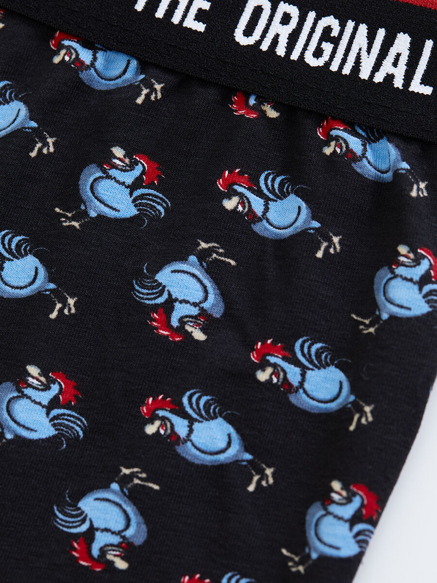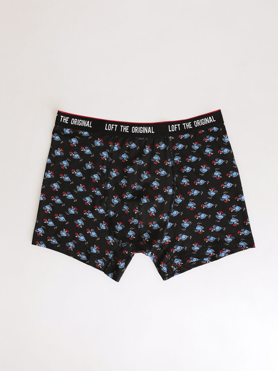 İç giyimimizin bu eğlenceli desenine bayılacaksınız! Siyah zemin üzerine konmuş mavi ve kırmızı renkli horozlar, gününüzü renklendirecek. Rahatlığını ve özgünlüğünü aynı anda yakala!