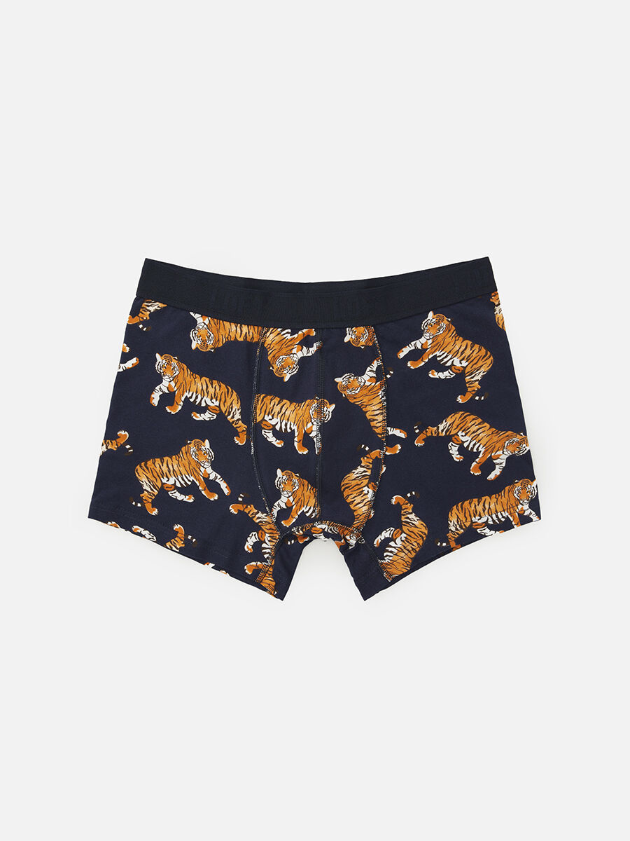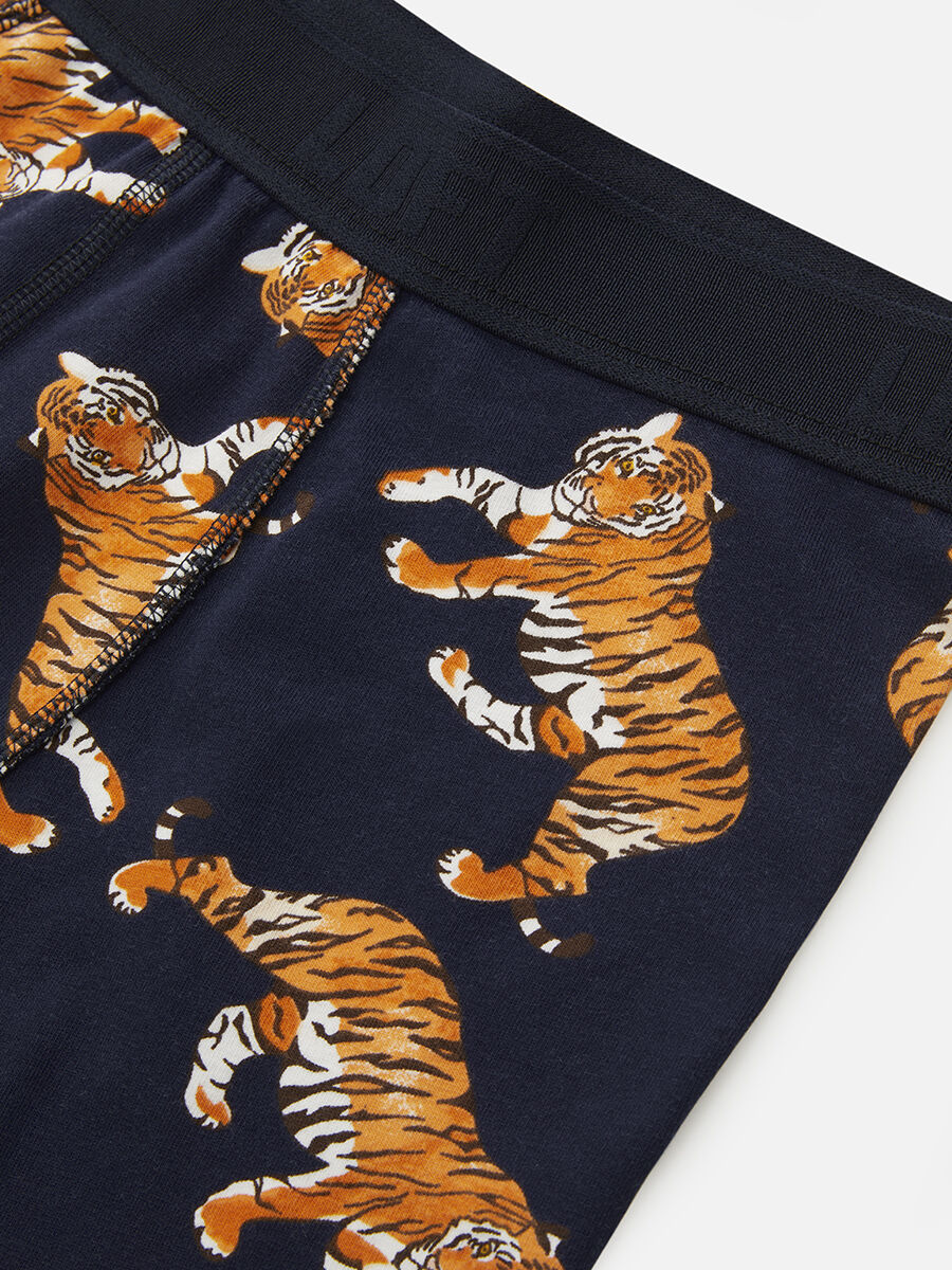 Koyu mavi zemin üzerine turuncu ve siyah kaplan desenleriyle tasarladığımız bu iç giyim ürününü giyerken, özgürlüğünü ve rahatlığını hissedeceksin! Her gün kendini farklı hissetmeni sağlayacak, tam sana göre bir tarz.