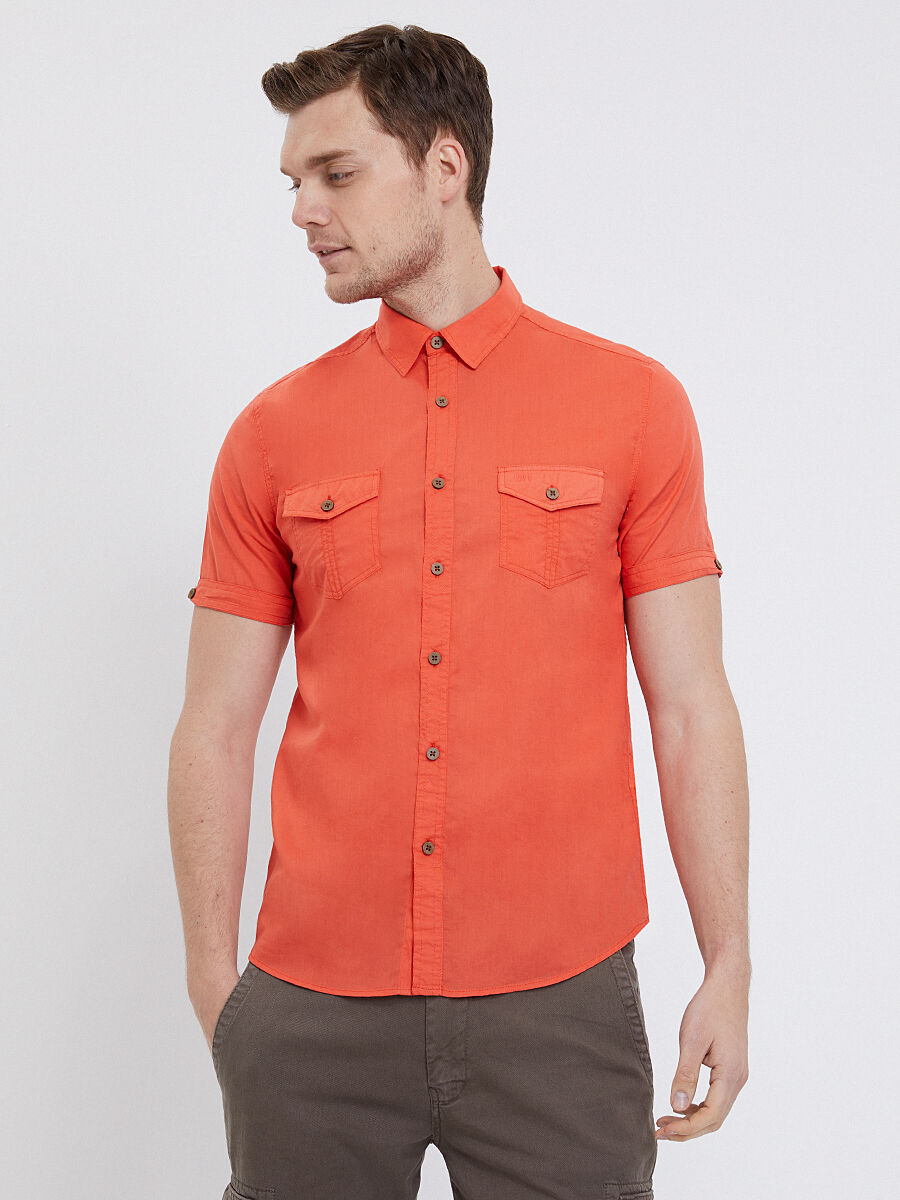 Kısa kollu, gömlek yakalı bu gömlek; Regular Fit duruşuyla bedenine kusursuz oturuyor. %100 pamuktan dokunan kumaşı, nefes alabilirliği ve yumuşaklığıyla gün boyu rahatlığı garantiliyor, dayanıklılığıyla da uzun yıllar tarzına eşlik ediyor. Düz deseninin şıklığı, casual ve smart casual duruşuyla her anına stil damgası vuruyor.