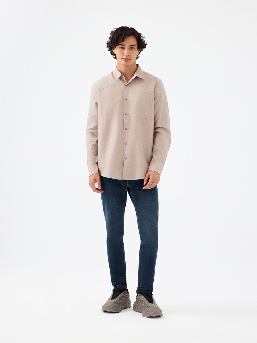 Gömlek yakanın modern çizgisi, uzun kollarla buluşunca ortaya çıkan silüet, stil sahibi duruşunu ortaya koyuyor. Regular fit kesimi sayesinde hareket özgürlüğünü doyasıya yaşa. %100 pamuk dokusu sayesinde gün boyu hafifliği ve yumuşaklığı hisset.