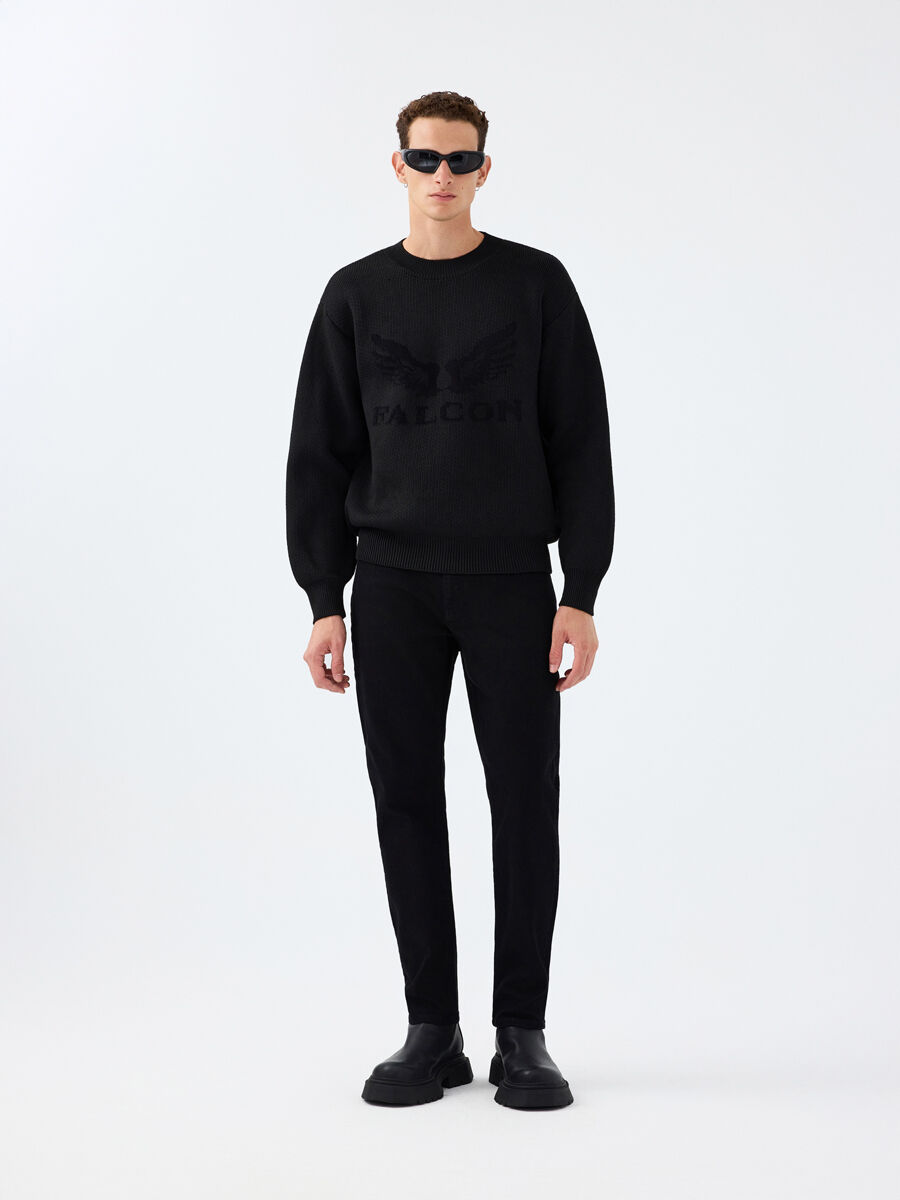 Bisiklet yaka triko kazakla özgünlüğünü sergile! Önündeki kuş figürü, casual ve streetwear ruhunu yansıtırken, regular fit kesimiyle gün boyu rahatlığın tadını çıkar.