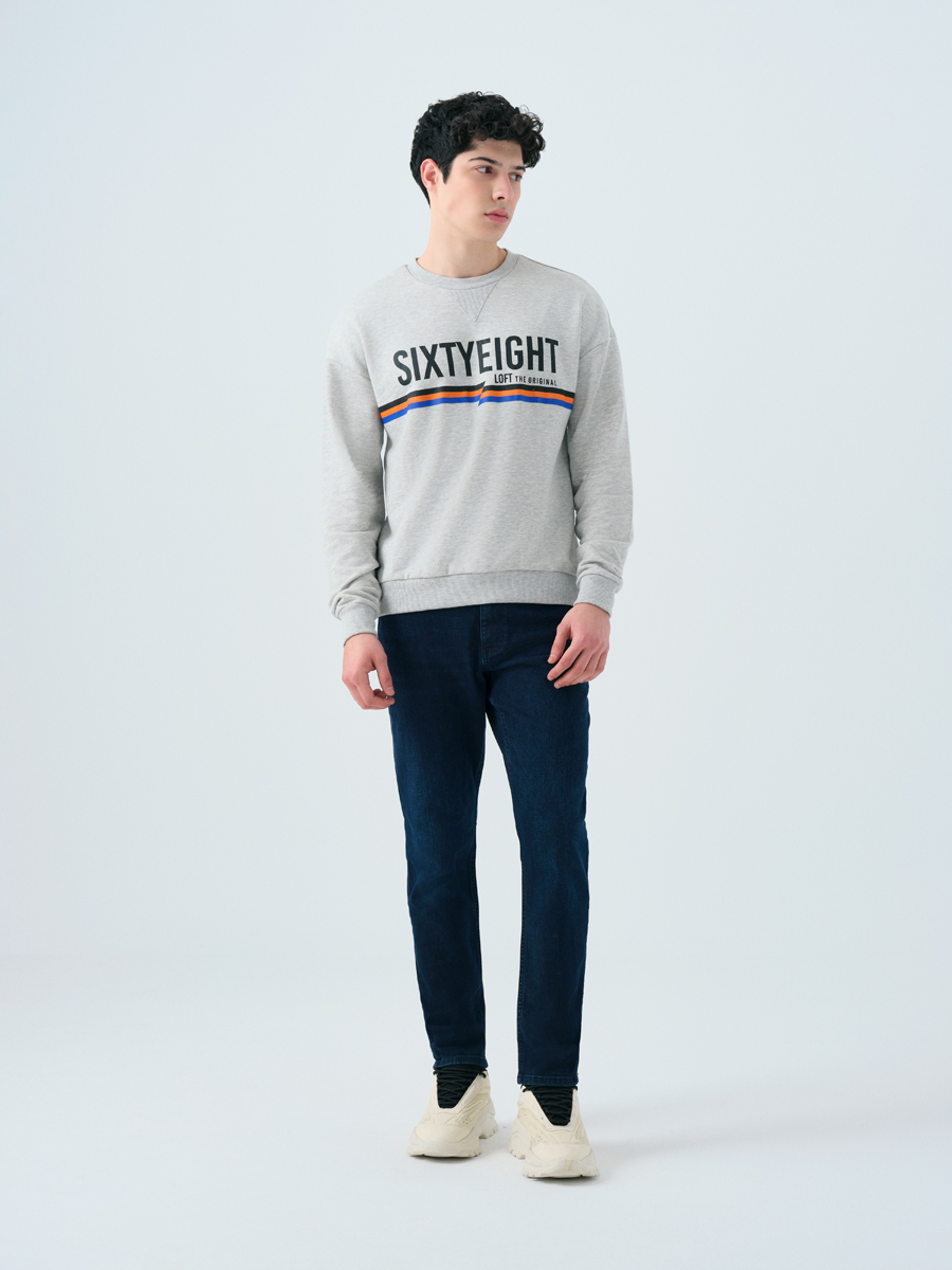Bisiklet yaka ve uzun kollu bu sweatshirt, günlük stilinde fark yaratmanı sağlar. Önündeki "SIXTYEIGHT" yazısı ve renkli şeritler, enerjini yansıtır. Rahat kesimi sayesinde gün boyu özgürce hareket edebilirsin.
