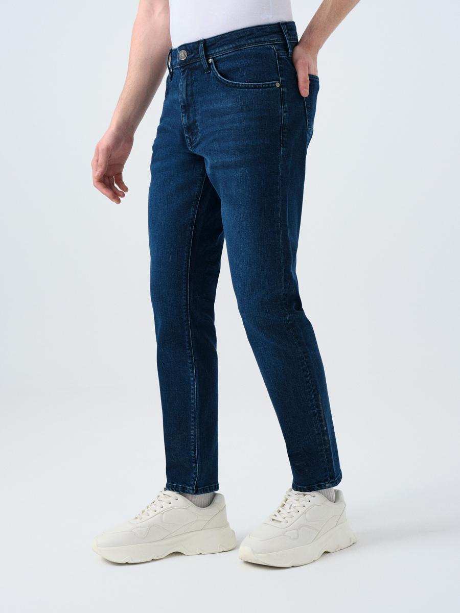 Düşük belin cesareti, dar paçanın dinamizmiyle buluşuyor, Ricardo ile sokaklara hükmetmeye hazır ol. Günlük yaşamın vazgeçilmezi, nefes alan yapısıyla konforu elden bırakmayan, aynı zamanda dayanıklılığı ve yumuşaklığıyla da kendine hayran bırakan bir parça. Desensiz, sade şıklığı ile her ortama uyum sağlayan bu slim fit denim, gardırobunun demirbaşı olacak.