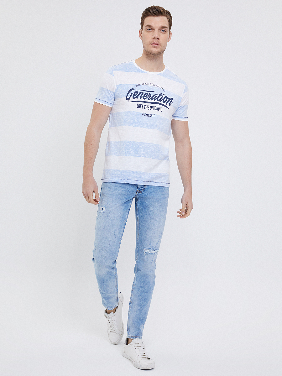Bisiklet yakasıyla vücudunuza kusursuz oturan, kısa kollu slim fit tişörtümüz; yatay çizgileri ve önündeki yazı-logo baskısıyla günlük ve sportif stilinizi bir üst seviyeye taşıyor. Üzerinize giydiğiniz an hissedeceğiniz mükemmel oturuşu, her hareketinizde özgürlüğü yakalamanızı sağlar. Enerji dolu çizgiler ve cesur baskılar, gününüze dinamizm katıyor.