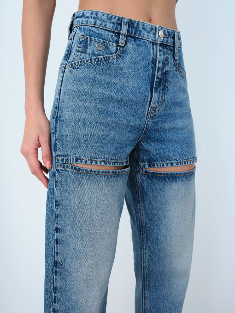 Yüksek bel SLIM STRAIGHT, vücuda oturan kesimi ve düz paçasıyla hareket özgürlüğünü kısıtlamadan feminenliği ön plana çıkarıyor. Pantolondaki dikey kesikler, denim kumaşın nefes alabilirliği ve yumuşaklığıyla birleşince sokak stiline farklı bir boyut katıyor.